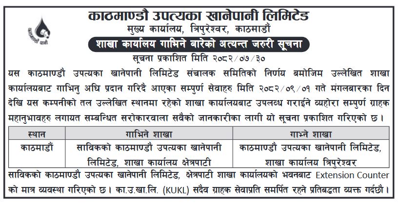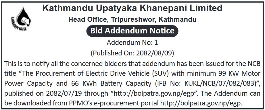 Kathmandu Upatyaka Khanepani Limited (KUKL) is a public company registered under the Nepal Government’s Company Act 2063 and operates under the Public Private Partnership (PPP) modality. According to KUKL’s Articles of Association, the company has the objective to undertake and manage the water supply and sanitation system of the Kathmandu Valley previously operated by NWSC and to provide a quantitative, qualitative and reliable service to its customers at an affordable price. It is responsible for the operation & management of water and wastewater services in the Valley. It operates the water supply and wastewater services under a License and Lease Agreement with the Kathmandu Valley Water Supply Management Board (KVWSMB) for 30 years. It is responsible for the maintenance of all assets received on lease from KVWSMB. It will also take over the responsibility for infrastructure built by the Melamchi Water Supply Project.The shareholders of the company, with relative initial shareholdings, are: the Government of Nepal (24%), Municipalities in the Valley (40%), Private Sector Organizations (12%) [ Nepal Chamber of Commerce- 7.2%, Federation of Nepal Chamber of Commerce & Industry – 2.4%, Lalitpur Chamber of Commerce – 1.2%, Bhaktapur Chamber of Commerce -1.2%], and an employee trust paid by the government (4%).