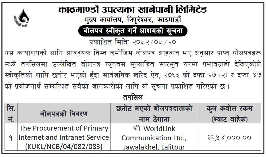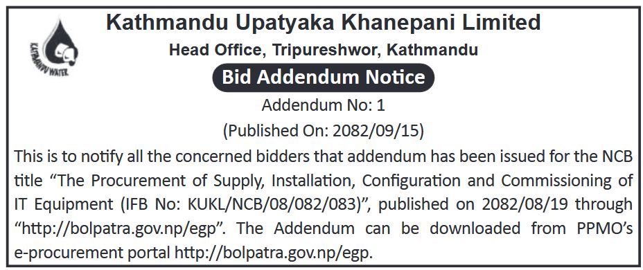 Kathmandu Upatyaka Khanepani Limited (KUKL) is a public company registered under the Nepal Government’s Company Act 2063 and operates under the Public Private Partnership (PPP) modality. According to KUKL’s Articles of Association, the company has the objective to undertake and manage the water supply and sanitation system of the Kathmandu Valley previously operated by NWSC and to provide a quantitative, qualitative and reliable service to its customers at an affordable price. It is responsible for the operation & management of water and wastewater services in the Valley. It operates the water supply and wastewater services under a License and Lease Agreement with the Kathmandu Valley Water Supply Management Board (KVWSMB) for 30 years. It is responsible for the maintenance of all assets received on lease from KVWSMB. It will also take over the responsibility for infrastructure built by the Melamchi Water Supply Project.The shareholders of the company, with relative initial shareholdings, are: the Government of Nepal (24%), Municipalities in the Valley (40%), Private Sector Organizations (12%) [ Nepal Chamber of Commerce- 7.2%, Federation of Nepal Chamber of Commerce & Industry – 2.4%, Lalitpur Chamber of Commerce – 1.2%, Bhaktapur Chamber of Commerce -1.2%], and an employee trust paid by the government (4%).