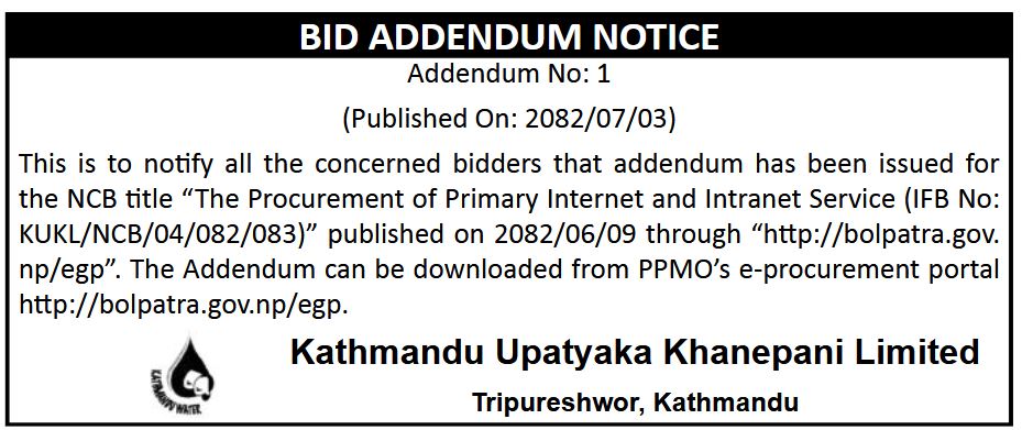Bid Addendum Notice (KUKL/NCB/01/082/083) – Main Office – 2082-05-20