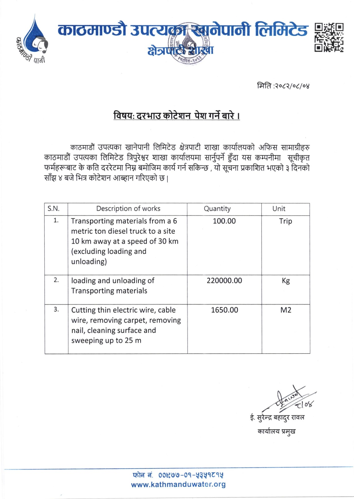 दरभाउ कोटेशन पेश गर्ने बारेको सूचना – क्षेत्रपाटी शाखा – २०८२-०८-०४